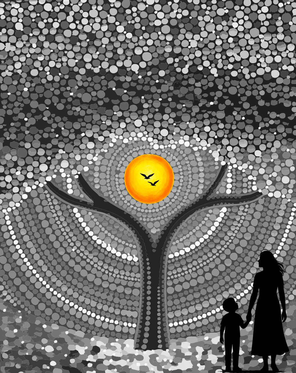 Tree And Sun – Dot Painting